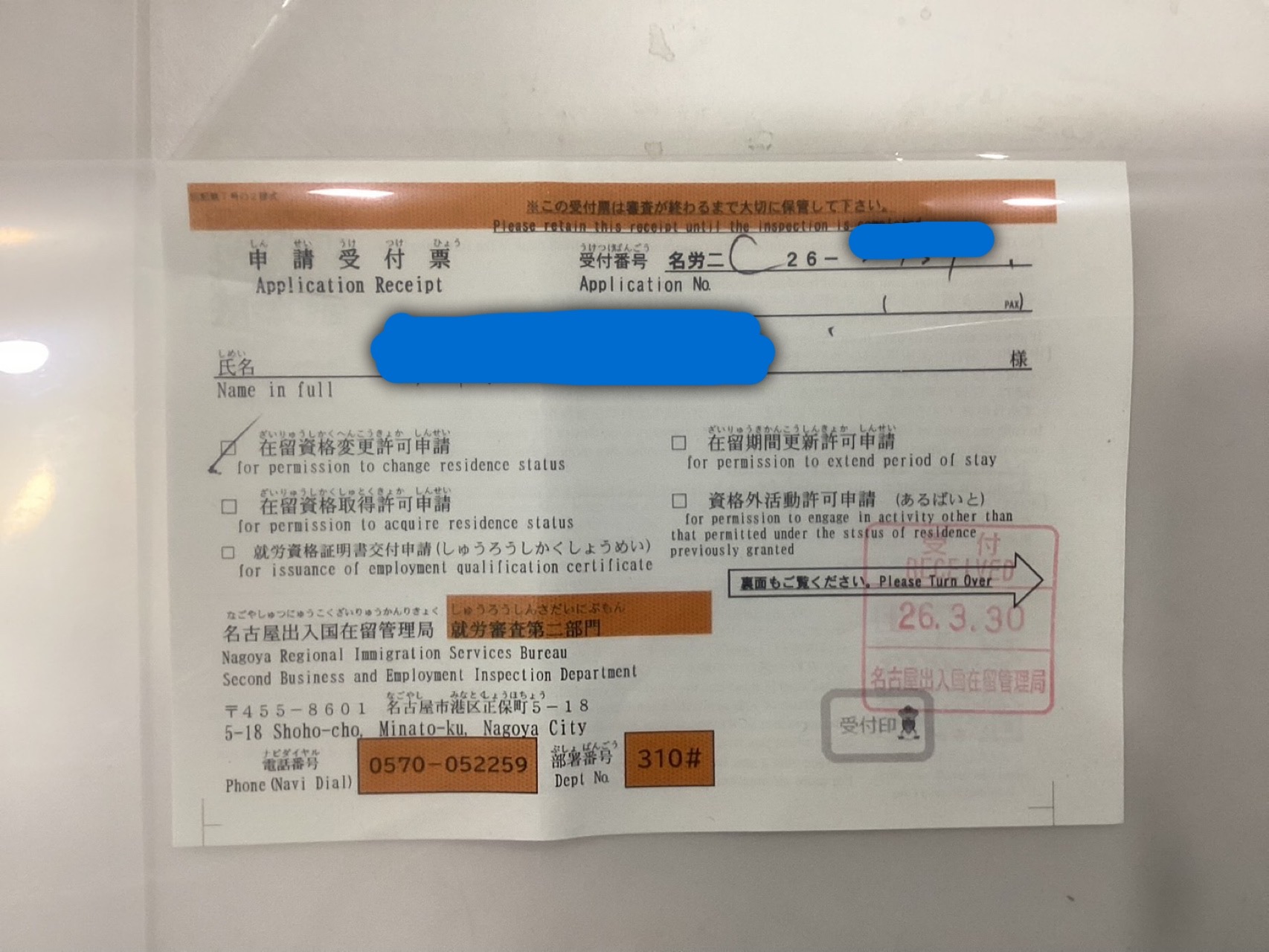 2026年3月30日(PM)、在留資格変更許可申請を名古屋入管へ申請しました!