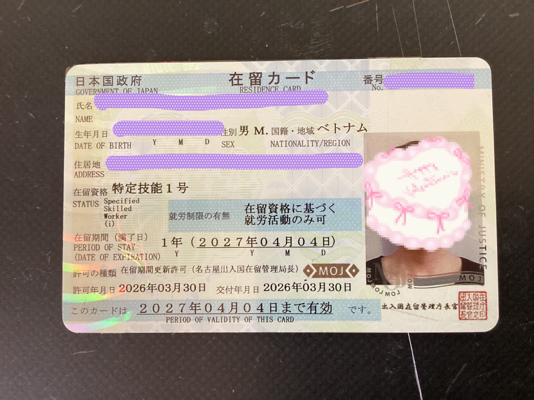 特定技能1号ビザ更新報告! 我拿到了签证 TOKUTEI GINO Có được Memperoleh Visa 2026 4/07 2026.3.30 ベトナム人男性 特定技能1号ビザ(農業)更新しました。 特定技能1号ビザ取得報告! 我拿到了签证 TOKUTEI GINO Có được Memperoleh Visa 関連記事 特定技能1号ビザ取得報告! 我拿到了签证 TOKUTEI GINO Có được Memperoleh Visa 2026年4月6日 在留期間更新許可申請(3/30PM) 2026年4月3日 在留期間更新許可申請(3/30 PM) 2026年4月2日 在留資格変更許可申請(3/30 PM) 2026年4月1日 在留期間更新許可申請(3/25 PM) 2026年3月31日 在留期間更新許可申請(3/19 PM) 2026年3月30日 在留資格変更許可申請(3/19 PM) 2026年3月27日 特定技能2号ビザ取得報告! 我拿到了签证 TOKUTEI GINO Có được Memperoleh Visa 2026年3月26日
